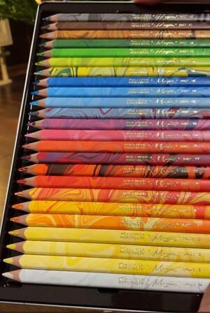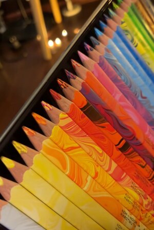 Tyto tužky jsou skutečně kouzelné, vytváří vícebarevnou stopu, která se mění natočením hrotu. Skvěle se hodí pro vybarvení větších ploch, na kterých se má střídat více blízkých odstínů (např. tráva nebo moře). 24 ks souprava včetně míchací tužky je dodávána ve stylové plechové krabičce, je proto ideální jako dárek pod stromeček.
