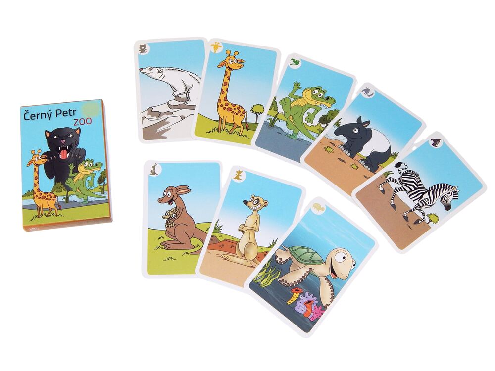 Hrací karty s motivem zvířat ze ZOO, určené pro klasickou hru Černý Petr. Hráči hledají dvojice stejných karet a snaží se vyhnout kartě s Černým Petrem – kdo ji má na konci hry v ruce, prohrává. Barevné a přehledné ilustrace podporují paměť, pozornost i postřeh a praktické balení zajišťuje pohodlné hraní doma, ve škole i na cestách. Přečíst si více
