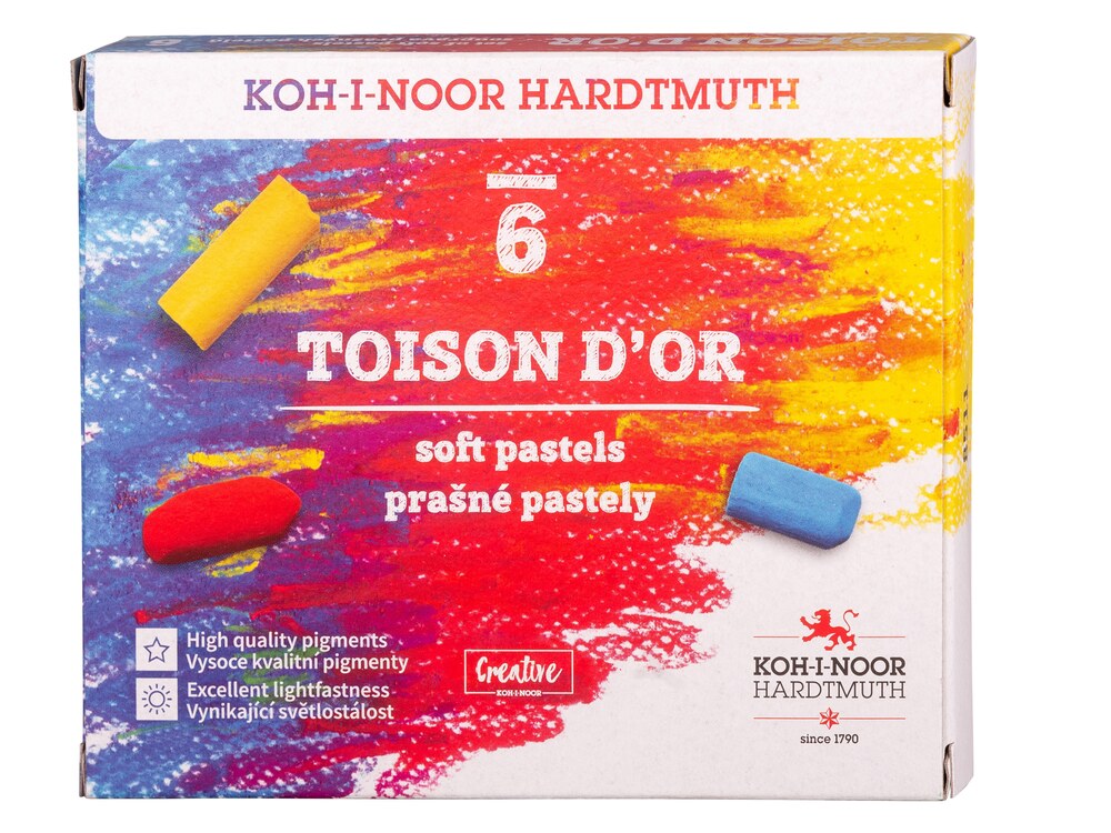 Souprava 6 ks kulatých prašných pastelů s ovinem o průměru 10 mm a délce 75 mm. Mají vynikající psací vlastnosti i světlostálost. Při kreslení je možné použít držák pastelů KOH-I-NOOR Versatil. Kresbu doporučujeme po dokončení stabilizovat fixativem. Přečíst si více