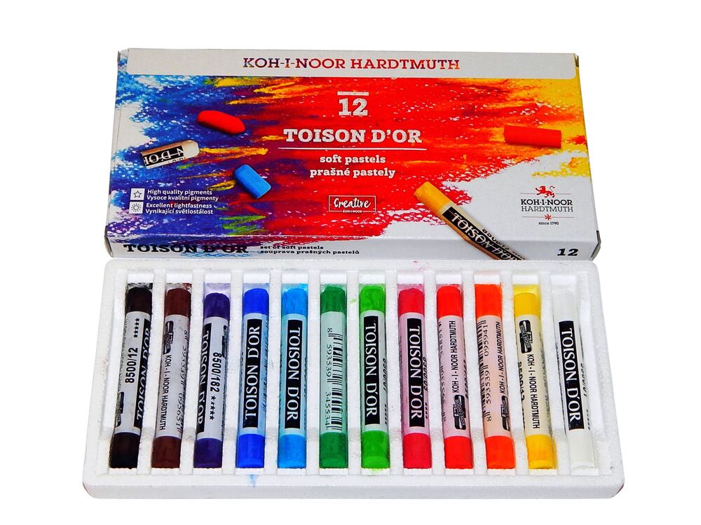 Souprava 12 ks kulatých uměleckých pastelů s ovinem o průměru 10 mm a délce 75 mm. Mají vynikající psací vlastnosti i světlostálost. Při kreslení je možné použít držák pastelů KOH-I-NOOR Versatil. Kresbu doporučujeme po dokončení stabilizovat fixativem. Přečíst si více