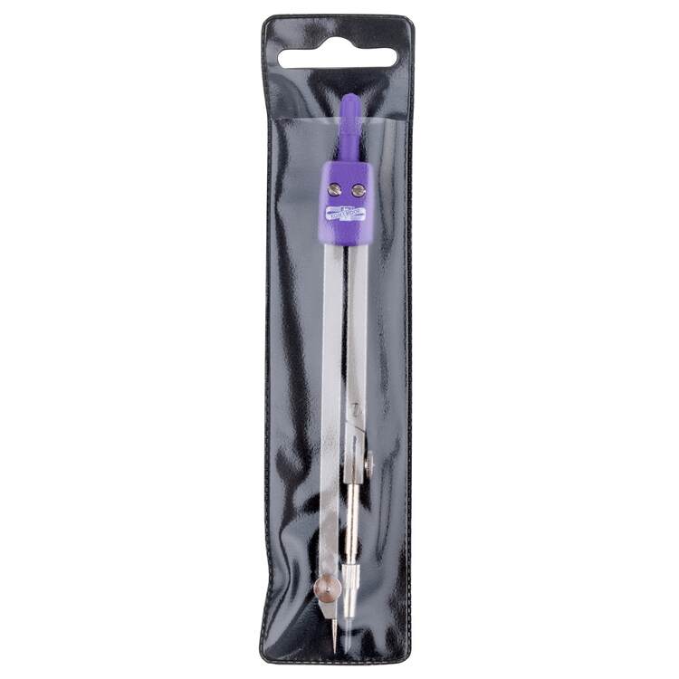 Kružidlo kovové pro základní školy s kolenem a vyměnitelnou jehlou ř.500 pro rýsování kružnic o průměru 5-400 mm. Koleno umožňuje pohodlnější nastavení kružidla a tím lepší komfort rýsování. Ramena kružidla jsou Zn výlisky s povrchovou úpravou práškový plast imitace Ni, ostatní kovové části niklované, plastové díly v barvě černé, červené, modré, zelené nebo lila. Kružidlo baleno po 1 ks do plastového obalu s transparentní vrchní částí a eurozávěsem. Přečíst si více