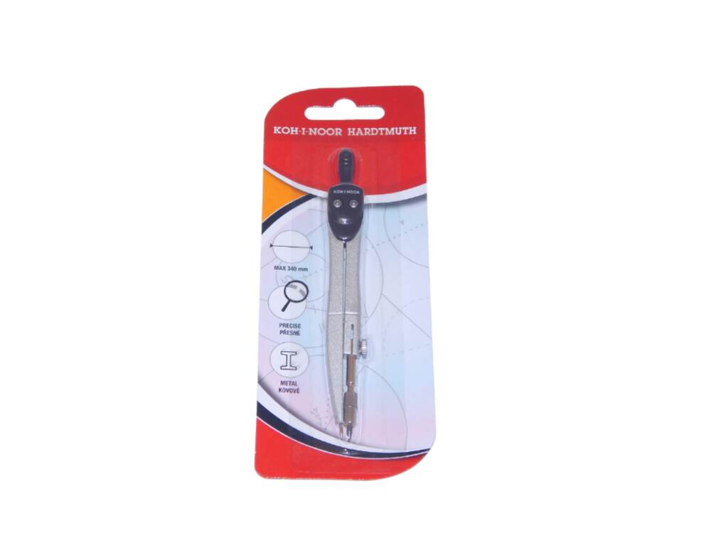 Školní kovové kružítko je určeno pro kreslení kružnic až do průměru 340 mm. Průměr čepu pro uchycení nástavce s tuhou (tužce) je 3,5 mm, průměr tuhy je 2 mm. Kružítka jsou vyrobena ze slitiny zinku s povrchovou úpravou ve stříbrné barvě (imitace Ni), horní plastový díl s držátkem je vyráběn v černé, červené, tmavě modré a oranžové barvě. Blistr s Euro závěsem obsahuje jedno kružítko. Přečíst si více