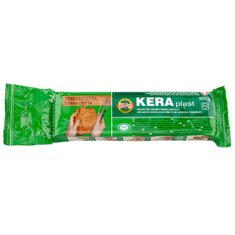 Naše bílá terakotová keraplastová hlína je modelovací hmota, která usychá a tvrdne působením vzduchu. Po zatvrdnutí je možné dílo dále barvit či zdobit. Doporučujeme důkladně hníst hlínu a navlhčit její povrch. Balení obsahuje 300 g produktu. Přečíst si více