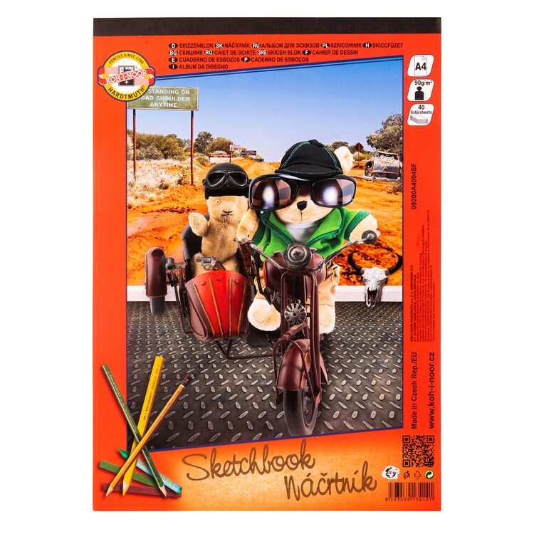 Skicák velikosti A4. Se 40 stránkami vysoce kvalitního papíru o gramáži 90 g/m² je vhodný pro kreslení tužkami, voskovkami a pastelkami. Přečíst si více