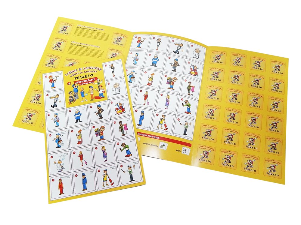 Zábavná a vzdělávací paměťová hra, která dětem pomáhá osvojit si anglická slovíčka z oblasti povolání. Při hledání dvojic si procvičují paměť, postřeh a zároveň se seznamují s novou slovní zásobou. Ideální pomůcka pro domácí učení, školku i školu, kde se hraní spojuje s výukou a motivuje děti k aktivnímu zapojení. Přečíst si více