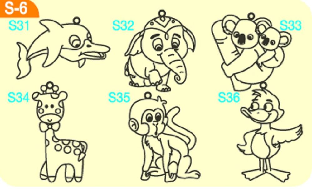 Plastová formička vhodná pro děti. Relief formičky se mohou vyplnit dekorativními barvami nebo modelovací hmotou Bubble foam. Bezbarvá krastenová formička S – 6 - černá reliéfní kresba se 6-ti motivy - delfín, opice, slon, žirafa, koala, kachna, do které se maluje nebo se vyplňuje hmotou. Spodní strana hladká, vrchní – černá vystouplá kresba s různými motivy. Rozměry 155 x 65 x 3 mm a 155 x 70 x 3 mm (koala). Přečíst si více