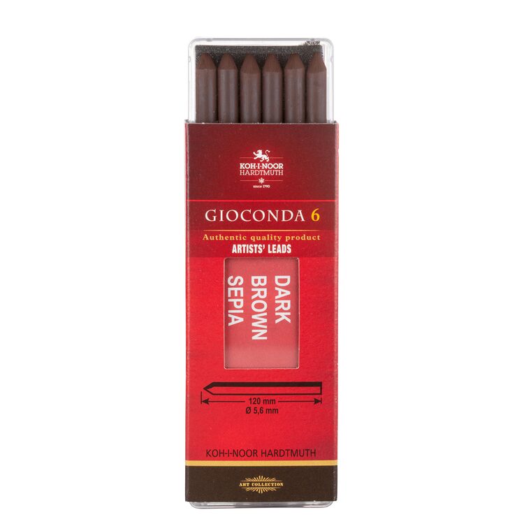 Sada 6 načernalých sépiových tuh o průměru 5,6 mm a délce 120 mm. Ideální pro portréty a krajiny. Doporučeno pro použití s mechanickými tužkami Versatil. Přečíst si více