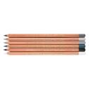 Umělecký set šesti prašných kříd v tužce. Pastelové jádro o průměru 4,2 mm s obsahem vysoce kvalitních pigmentů je zasazeno do kulatého dřevěného pláště. Tenký profil prašné křídy umožňuje zachycení jemných detailů a kresbu přesných linií. Skvěle se hodí jako doplněk ke klasickým prašným křídám se širokou stopou. Barevná škála této soupravy poskytuje ideální paletu pro kresbu v odstínech šedé. Stopu pastelu je možné rozetřít pomocí blenderu či prstu. Pro delší životnost kresby a zachování stálosti barev doporučujeme kresbu stabilizovat fixativem. Přečíst si více