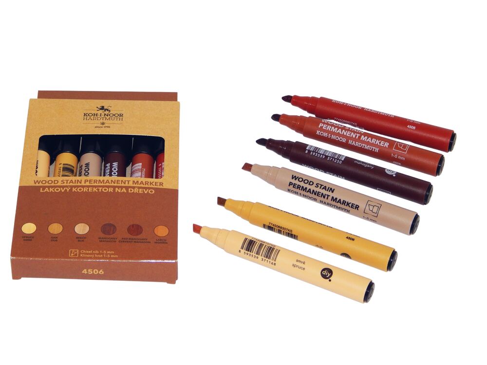 Značkovače plněné inkousty na alkoholové bázi, v odstínech dřeva. Stopa písma je odolná otěru a působení vody a povětrnostních vlivů a je světlostálá. Jsou určeny pro kolorování a opravy menších ploch dřeva, nábytku, podlah a podobných materiálů. V případě potřeby je možné stopu z neporézních materiálů smýt lihem. Jsou osazeny klínovými hroty o průměru 5 mm a je možné psát šířkou stopy písma 1- 5 mm, délka 400 m. Baleny jsou v papírových krabičkách v soupravách po 6 ks. Přečíst si více