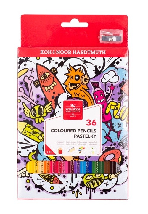 Souprava šestihranných pastelových tužek. Pastelky jsou v dřevěném plášti a balené po 36 odstínech do kartonové krabičky + ořezávátko. Zanechávají sytou stopu a jsou vhodné pro školáky i univerzální použití. Přečíst si více