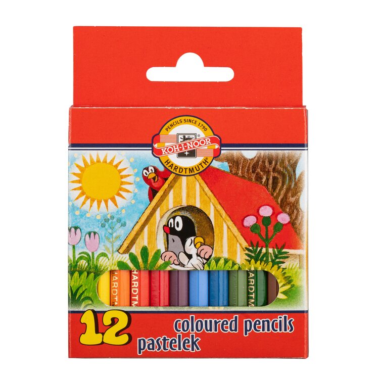 Sada 12 šestihranných pastelek poloviční velikosti. Pevné dřevěné pouzdro tužky. Dlouhotrvající barevné tuhy s vysoce kvalitními pigmenty. Pastelky jsou ideální pro školní i domácí použití. Papírová krabička je navržena s okouzlujícím dětským potiskem slavného Krtka od známého českého umělce Zdeňka Milera. Přečíst si více