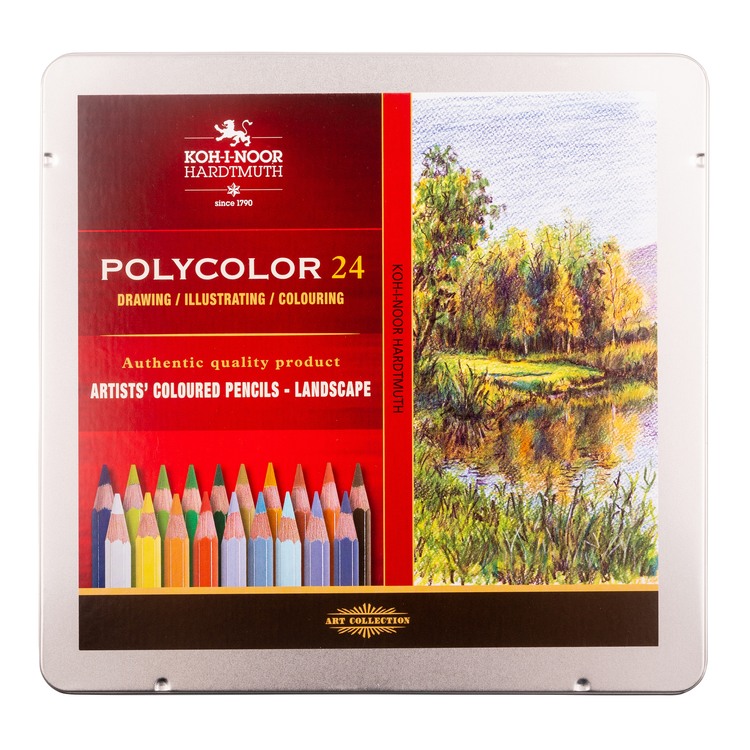 Vytvářejte ohromující kresby krajiny s naší sadou barevných tužek POLYCOLOR nejvyšší kvality. 24 tužek s úžasnými barevnými odstíny jsou ideální pro amatérské i profesionální umělce. Bohatě pigmentované tuhy poskytují vynikající sytost barev a mají vynikající schopnost míchání a vrstvení. Hladká a hedvábná textura stopy umožňuje snadnou a přesnou aplikaci, zatímco šestiúhelníkový tvar tužek poskytuje stabilní uchopení, díky čemuž se pohodlně používají po delší dobu. Precizně zpracované dřevěné pouzdro s jemnou smaltovanou povrchovou úpravou zajišťuje, že tužky jsou krásné a odolné. Tato sada zabalená v krásné kovové krabičce představuje skvělý dárek pro umělce všech úrovní. Souprava 24 ks špičkových pastelových tužek s kvalitním silně pigmentovaným jádrem o průměru 3,8 mm v plechové krabičce. Tužky mají špičkovou povrchovou úpravu, máčený knoflík a zlaté značení. Vyznačují se sytou barevnou stopou s možností kresbu dále upravovat roztíráním. Jsou vhodné pro umělecké a hobby kreslení. Přečíst si více