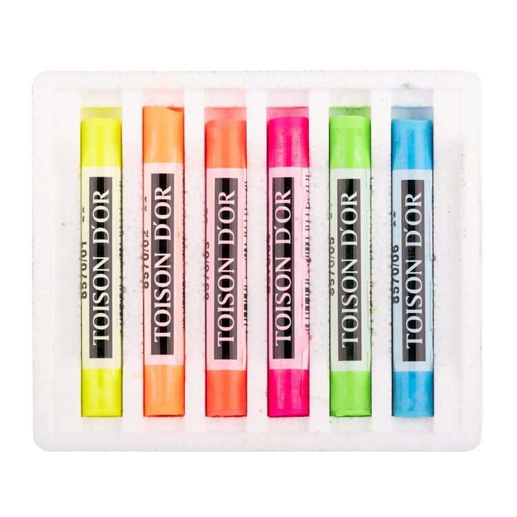 Sada 6 fluorescenčních jemných pastelů. Sada obsahuje 6 neonových barev, které jsou vysoce pigmentované. Velmi odolné proti vyblednutí. Díky kulatému tvaru pastelů se s nimi snadno manipuluje. Snadno se mísí. Doporučujeme jej stabilizovat fixačním sprejem ART. Přečíst si více