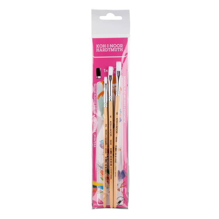Plochý štětec syntetický je určený pro školní účely. Je to sada 3 ks plochých štětců. Velikost štětce je č. 2, 4 a 6. Mají přírodní lakovaný dřík, syntetický bílý vlas a toulec z hliníku. Vlas je dlouhý 10, 12 a 13 mm, šířka vlasu je 5, 6,4 a 7,5 mm a rukojeť je dlouhá 145, 155 a 160 mm. Vlas je lepený. Štětce jsou uloženy v plastovém sáčku s eurozávěsem, vlasem směrem k eurozávěsu. Uvnitř je potištěná papírová vložka. Rozměr soupravy s eurozávěsem 320 x 50 x 7 mm. Přečíst si více