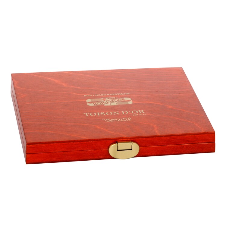 Luxusní sada mechanických tužek KOH-I-NOOR v designu TOISON D´OR v dřevěné kazetě. Tužky jsou s tuhami ve všech dvaceti vyráběných gradacích. Každá tužka je opatřena hrotítkem. Kromě toho kazeta obsahuje brousítka a Speciální hrotítko na přesné doostření hrotů tuh. Souprava je vhodná pro technické, umělecké i hobby kreslení a rýsování. Přečíst si více