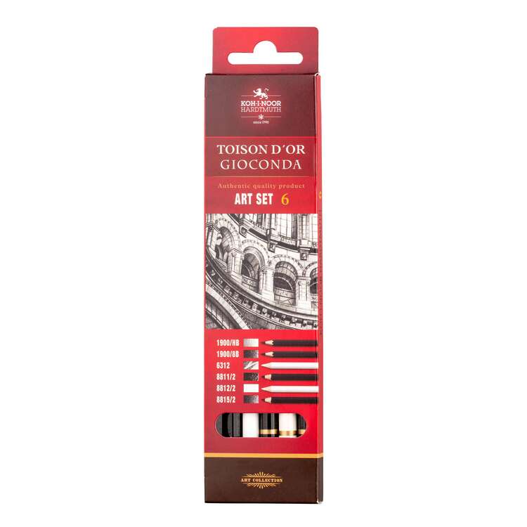 Tato sada šesti uměleckých tužek obsahuje dvě grafitové tužky KOH-I-NOOR HARDTMUTH 1900 v gradaci HB a nejměkčí gradaci 8B. Ty doplňuje umělý černý a bílý uhel v tužce střední tvrdosti. Umělý uhel je ekvivalentem uhlu přírodního a obsahuje dokonale jemné pigmenty prémiové kvality. Bílý uhel se skvěle uplatní při kresbě na barevné papíry. V soupravě najdete i Speciální tužku SILKY BLACK gradace Medium, která se vyznačuje extra černou mastnou stopou. Posledním doplňkem této kolekce je stírací pryž v tužce. Přečíst si více