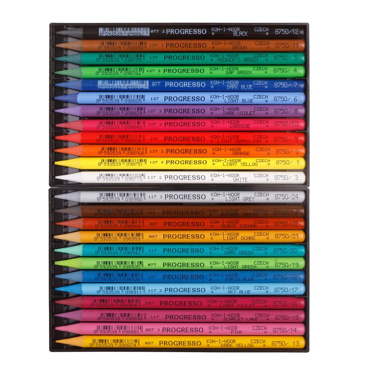Představujeme jedinečnou sadu barevných pastelek PROGRESSO s 24 barevnými odstíny. Celá pastelka je vyrobena z kreslicího jádra, která umožňuje bohatou a širokou stopu. Pastelky jsou vhodné pro vybarvování velkých ploch bez námahy a jsou ideální pro začátečníky i umělce. Velmi snadné ostření. Přečíst si více