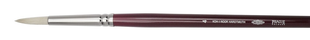 Kulatý tvar štětce určený pro umělecké účely. Kulatý tvar štětce, velikost č. 4, prasečí štětina určena pro olejové a akrylové barvy. Dřevěné držadlo je ve vínově červeném provedení, na konci štětce máčení v odstínu toulce. Dřík dřevěný, toulec mosazný – odstín stříbrný, vlas „prasečí štětina“. Celková délka štětce: 300 mm, délka vlasu: 22 mm, průměr vlasu: 5 mm. Přečíst si více