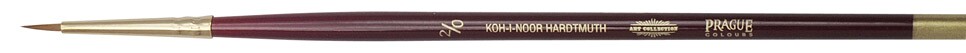 Kulatý štětec určený pro umělecké účely. Kulatý umělecký štětec, velikost č. 2/0, vlas kolínský určen pro vodové barvy. Na vlasech štětce je plastová krytka, jako chránítko před roztřepením vlasů. Dřevěné držadlo je ve vínově červeném provedení, na konci štětce máčení v odstínu toulce. Dřík dřevěný, toulec mosazný – odstín zlatý, bezešvý, vlas „kolínský – lasice“. Celková délka štětce: 170 mm, délka vlasu: 6 mm, průměr vlasu: 1 mm. Přečíst si více