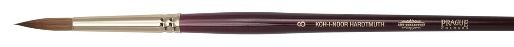 Kulatý štětec určený pro umělecké účely. Kulatý umělecký štětec, velikost č. 8, vlas kolínský určen pro vodové barvy. Na vlasech štětce je plastová krytka, jako chránítko před roztřepením vlasů. Dřevěné držadlo je ve vínově červeném provedení, na konci štětce máčení v odstínu toulce. Dřík dřevěný, toulec mosazný – odstín zlatý, bezešvý, vlas „kolínský – lasice“. Celková délka štětce: 198 mm, délka vlasu: 22 mm, průměr vlasu: 4 mm. Přečíst si více