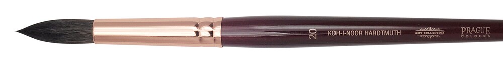 Kulatý štětec určený pro umělecké účely. Kulatý umělecký štětec, velikost č. 20, chlup veverka určen pro vodové barvy a kvaš. Na vlasech štětce je plastová krytka, jako chránítko před roztřepením vlasů. Dřevěné držadlo je ve vínově červeném provedení, na konci štětce máčení v odstínu toulce. Dřík dřevěný, toulec mosazný – odstín měděný, bezešvý, chlup „veverka“. Celková délka štětce : mm, délka vlasu: mm, průměr vlasu: mm. Přečíst si více