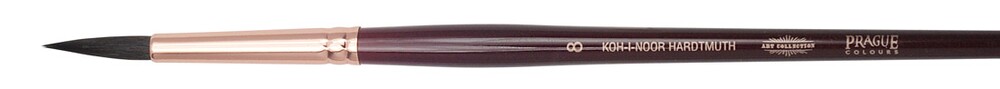 Kulatý štětec určený pro umělecké účely. Kulatý umělecký štětec, velikost č. 8, chlup veverka určen pro vodové barvy a kvaš. Na vlasech štětce je plastová krytka, jako chránítko před roztřepením vlasů. Dřevěné držadlo je ve vínově červeném provedení, na konci štětce máčení v odstínu toulce. Dřík dřevěný, toulec mosazný – odstín měděný, bezešvý, chlup „veverka“. Celková délka štětce: 197 mm, délka vlasu: 20 mm, průměr vlasu: 5 mm. Přečíst si více