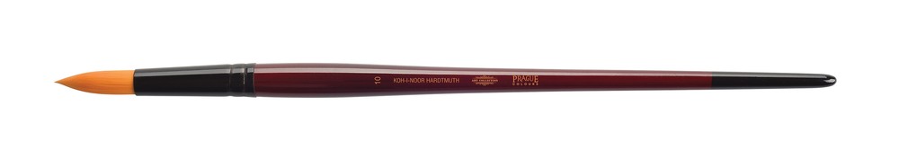 Kulatý štětec syntetický je určený pro umělecké účely. Velikost štětce č. 10. Štětec má přírodní lakovaný dřík ve vínově červené barvě, syntetický oranžový vlas a toulec z hliníku, černě lakovaný. Na konci štětce je černé máčení v odstínu toulce. Štětec je vhodný pro akrylové barvy. Vlas je vytvarován do špičky a chráněn plastovou krytkou, která zabraňuje poškození vlasu. Štětec je dlouhý 326,5 mm. Délka vlasu je 34,5 mm. Přečíst si více