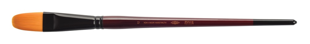 Oválný štětec syntetický je určený pro umělecké účely. Velikost štětce č. 12. Štětec má přírodní lakovaný dřík ve vínově červené barvě, syntetický oranžový vlas a toulec z hliníku, černě lakovaný. Na konci štětce je černé máčení v odstínu toulce. Štětec je vhodný pro akrylové barvy. Štětec je dlouhý 356,7 mm. Délka vlasu je 54 mm. Přečíst si více