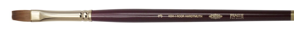 Plochý štětec určený pro umělecké účely. Plochý umělecký štětec, velikost č. 3, vlas kolínský určen pro vodové barvy. Na vlasech štětce je plastová krytka, jako chránítko před roztřepením vlasů. Dřevěné držadlo je ve vínově červeném provedení, na konci štětce máčení v odstínu toulce. Dřík dřevěný, toulec mosazný – odstín zlatý, bezešvý, vlas „kolínský – lasice“. Celková délka štětce: 186 mm, délka vlasu: 11 mm, šířka vlasu: 6 mm. Přečíst si více