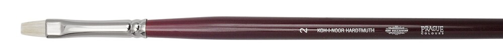 Podélný štětec určený pro umělecké účely s vázaným vlasem. Podélný umělecký štětec, velikost č. 2, prasečí štětina určena pro olejové a akrylové barvy. Dřevěné držadlo je ve vínově červeném provedení, na konci štětce máčení v odstínu toulce. Dřík dřevěný, toulec mosazný – odstín stříbrný, bezešvý, vlas „prasečí štětina“. Celková délka štětce: 282 mm, délka vlasu: 9 mm, šířka vlasu: 6 mm. Přečíst si více