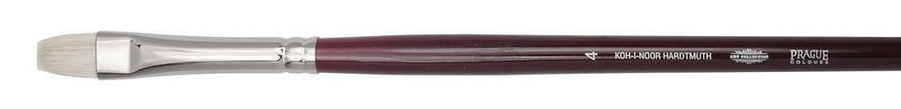 Podélný štětec určený pro umělecké účely s vázaným vlasem. Podélný umělecký štětec, velikost č. 4, prasečí štětina určena pro olejové a akrylové barvy. Dřevěné držadlo je ve vínově červeném provedení, na konci štětce máčení v odstínu toulce. Dřík dřevěný, toulec mosazný – odstín stříbrný, bezešvý, vlas „prasečí štětina“. Celková délka štětce: 298 mm, délka vlasu: 12 mm, šířka vlasu: 9 mm. Přečíst si více