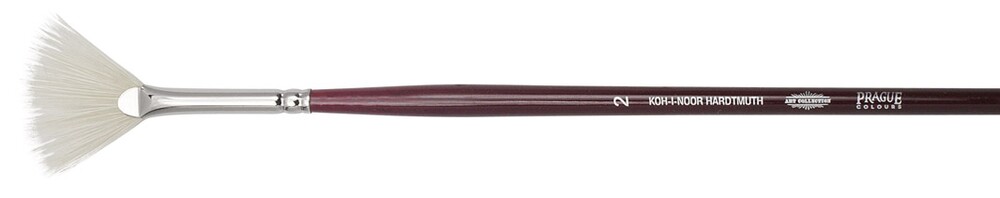Vějířovitý štětec určený pro umělecké účely. Vějířovitý umělecký štětec, velikost č. 2, prasečí štětina určena pro olejové a akrylové barvy. Dřevěné držadlo je ve vínově červeném provedení, na konci štětce máčení v odstínu toulce. Dřík dřevěný, toulec mosazný – odstín stříbrný, vlas „prasečí štětina“. Celková délka štětce: 290 mm, délka vlasu: 17 mm, šířka vlasu: 30 mm. Přečíst si více