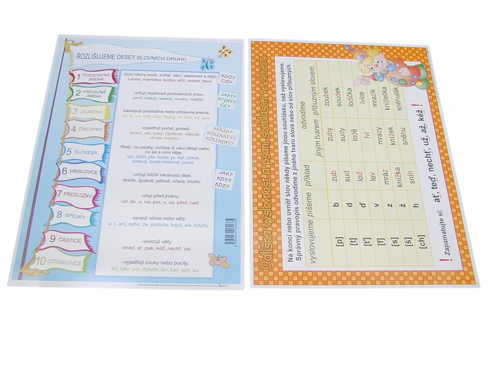 Přehledná vzdělávací tabulka formátu A4 slouží jako praktická pomůcka pro žáky základních škol. Obsahuje jasně a srozumitelně zpracovaný přehled slovních druhů a souhlásek, který usnadňuje orientaci v učivu českého jazyka. Vhodná pro domácí přípravu, školní výuku i opakování. Ideální k vložení do sešitu, složky nebo k vystavení na pracovním místě. Přečíst si více