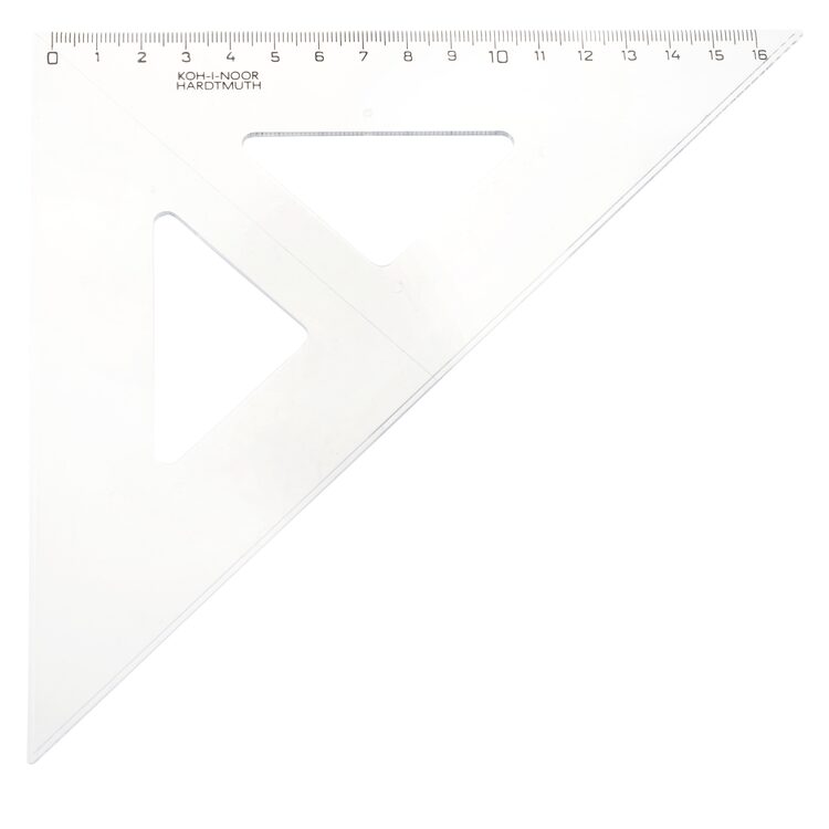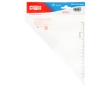 Trojúhelník 45/177 s kolmicí vyrobený z čirého průhledného polystyrenu. Stupnice je naražena technologií horké ražby. Přesnost stupnice 0,2% délky. Mimo délkové stupnice je vybaven i ryskou pro konstruování kolmic. Trojúhelník je určený k rýsování a technickému kreslení ve škole i v kanceláři. Zabalen je do potištěného polypropylenového sáčku s eurozávěsem. Přečíst si více