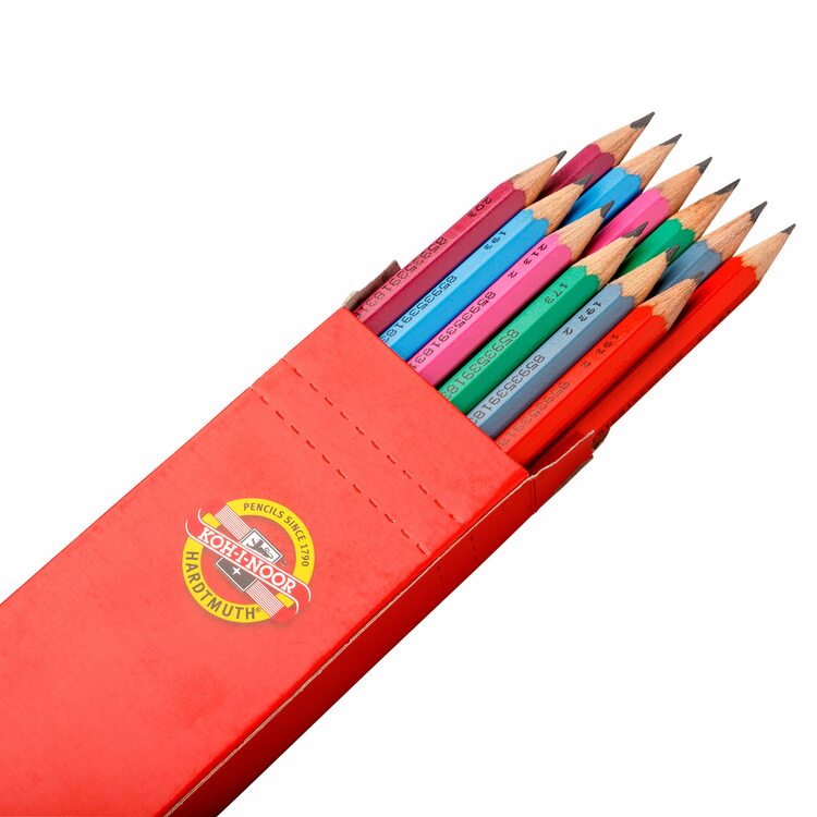 Šestihranné tužky v dřevěném plášti s grafitovým jádrem v gradaci 2/HB. Tužky jsou v šesti odstínech povrchové úpravy a mají 6 odstínů gumotypů, balené po 12 ks (mix) do krabičky. Hodí se pro univerzální použití. Přečíst si více