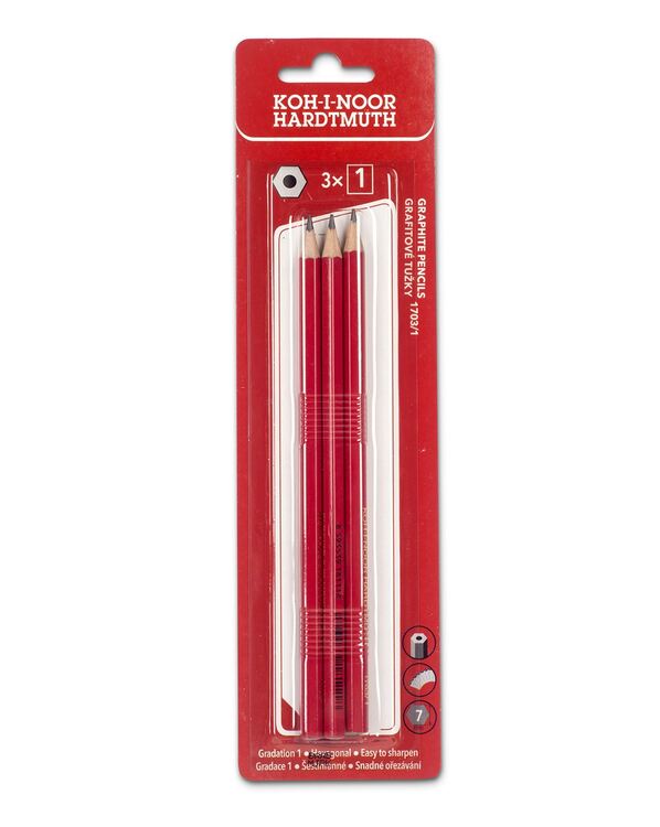 Souprava šestihranných grafitových tužek v gradaci č. 1. Tužky jsou v dřevěném plášti a v červeném lakování. Balené po 3 ks jedné gradace do blistru. Tužky jsou vhodné jak pro školáky tak i pro univerzální použití. Přečíst si více