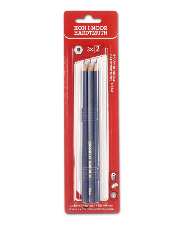 Souprava šestihranných grafitových tužek v gradaci č.2. Tužky jsou v dřevěném plášti a v šedém lakování. Balené po 3 ks jedné gradace do blistru. Tužky jsou vhodné jak pro školáky tak i pro univerzální použití. Přečíst si více