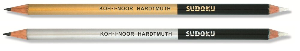 Oboustranné kulaté tužky v dřevěném plášti v kombinaci s grafitovým jádrem v gradaci 2B a pryžovým jádrem. Tužky jsou zabaleny do plastového tubusu po 36 ks v kombinaci zlatě a střibrně leštěných. Jsou vhodné zvláště pro milovníky luštění křížovek a SUDOKU. Přečíst si více