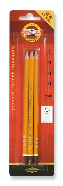 Souprava žlutých grafitových tužek 1580 – 3 ks tužek jedné gradace v blistru. Trojhranné grafitové tužky v dřevěném plášti z certifikovaného dřeva FSC 100%. Grafitové jádro je ve tvrdosti H. Gradace jsou přesně dodržovány. Ergonomický trojhranný tvar umožňuje optimální držení a vedení tužky. Jsou určeny nejen pro školáky a děti předškolního věku, ale i pro výtvarníky a umělce. Přečíst si více