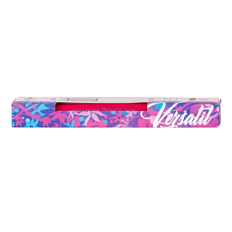 Tužka mechanická padací s grafitovou tuhou 4B o průměru 5,6 mm v kombinaci kovová mechanika-trojboký plastový růžový profilovaný plášť a viditelné poniklované kovové části. Je určená pro běžné psaní i kreslení. Tuha se posunuje stisknutím knoflíku v nakloněné poloze tužky, tím dojde k otevření kleštiny a vysunutí tuhy. V knoflíku je umístěno hrotítko, po odšroubování stiskacího knoflíku lze hrotit tuhu. Na plášti je tmavě stříbrnou barvou vytištěno číslo typu tužky a KOH-I-NOOR Versatil 5348. Tužka je jednotlivě balená v papírové krabičce s označením EAN1. Skupinové balení tužky je po 10 ks v kartonové krabičce s označením EAN2. Přečíst si více