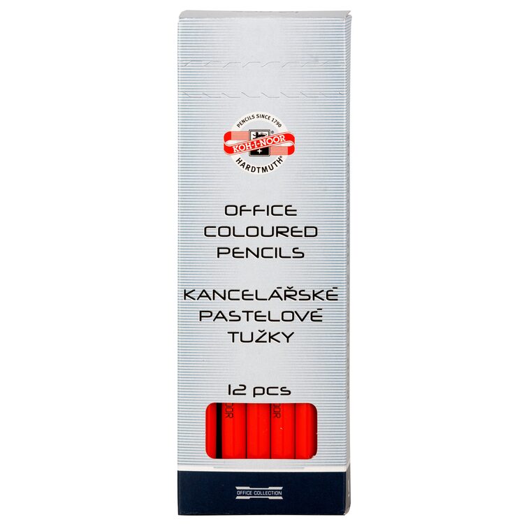 Kancelářské šestihranné pastelové tužky OK-9 mm, v dřevěném plášti, s červenou tuhou. Balené po 12 ks tužek v kartonové krabičce. Jsou určeny pro kancelářské a univerzální použití. Mají výraznou stopu. Přečíst si více