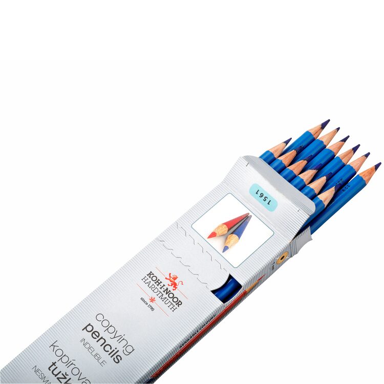 Sada modrých kopírovacích tužek 1561 - 12 ks tužek v kartonové krabičce. Kulaté tužky v dřevěném plášti Ø - 7 mm. Tužky mají výraznou barevnou stopu, obtížně odstranitelnou. Je vhodná i pro Speciální grafické techniky. Přečíst si více