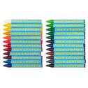 souprava voskovek určených pro školní, aranžérské a umělecké kreslení – 24 ks souprava. Souprava 24 kusů kulatých voskovek se zašpičatělým koncem o rozměrech Ø 7,8 mm, délka 80 mm, kde každá voskovka je obalená zavinovacím štítkem modro-bíle pruhovaným se žlutým textem WAX CRAYON. Přečíst si více