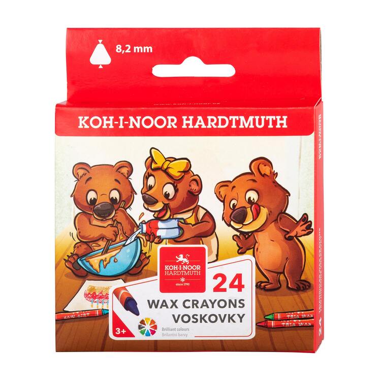 souprava trojhranných voskovek určených pro školní, aranžérské a umělecké kreslení – 24 ks souprava. Souprava 24 kusů trojhranných voskovek se zašpičatělým koncem o rozměrech TR 8,2 mm, délka 90 mm, kde každá voskovka je obalená červeným zavinovacím štítkem. Přečíst si více