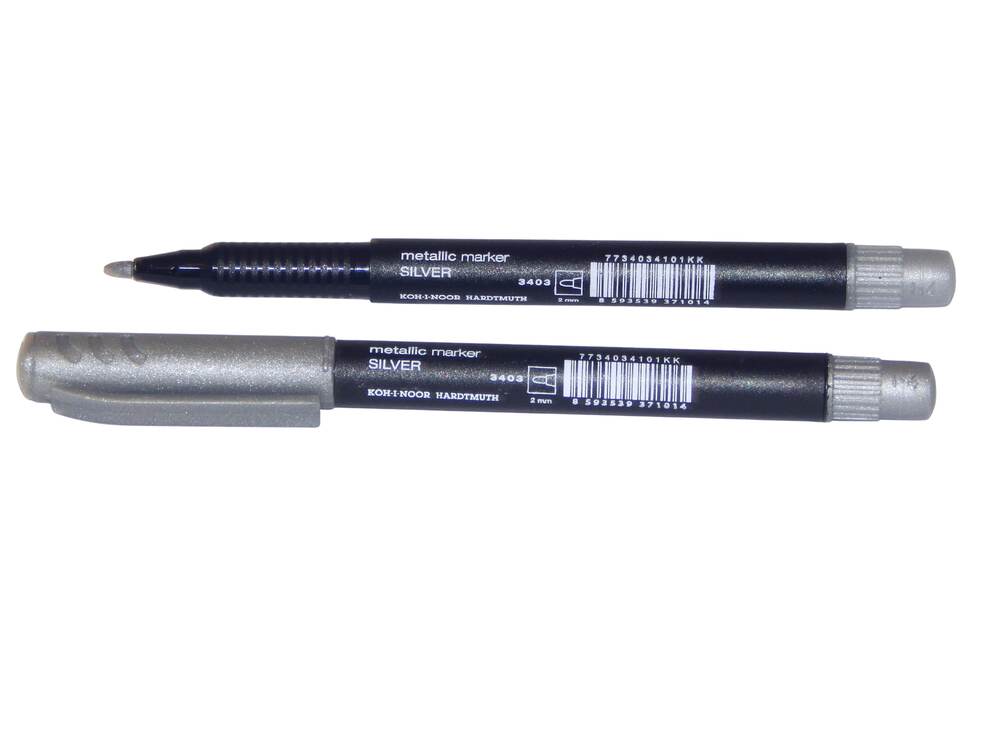 Metalický popisovač na vodní bázi – stříbrný, psací potřeba, určený pro psaní, kreslení a dekorování. Inkoust je permanentní na papíře a porézních materiálech a částečně permanentní na neporézních materiálech, jako jsou sklo, plasty nebo kovy, světlostálý, šíře stopy 2 mm Přečíst si více